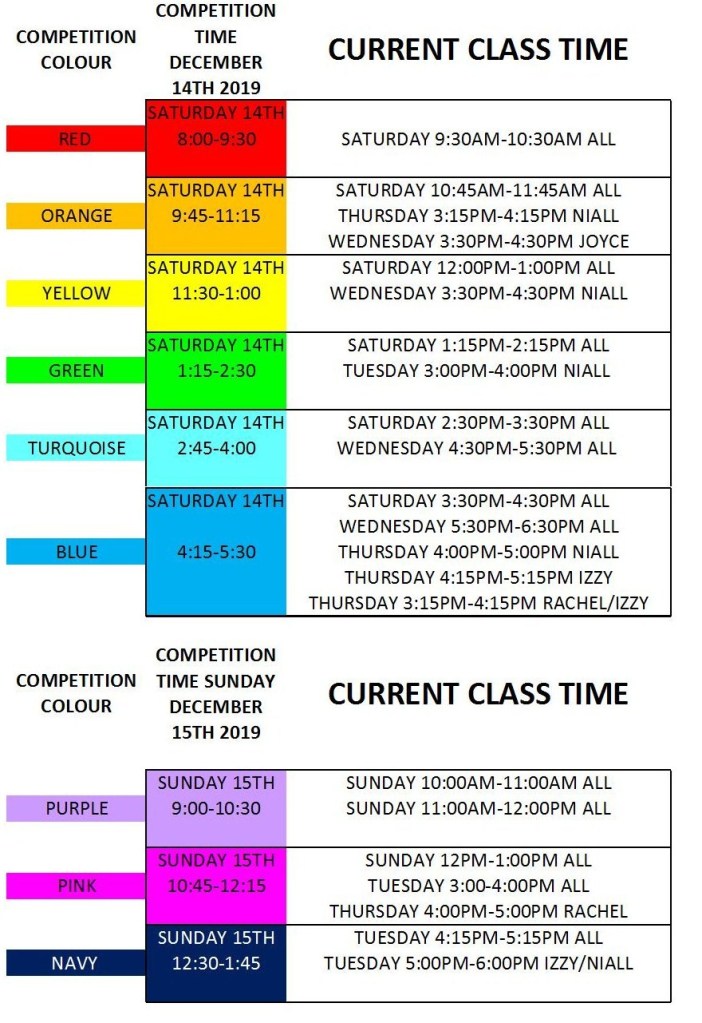 The Christmas Competitions will be held on Saturday 15th and Sunday 16th of December 2018. Please take note of times as your child’s time may be different to their current training time.